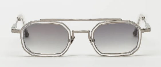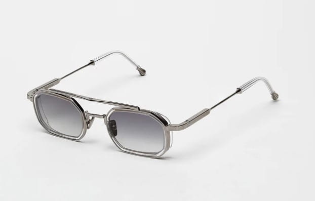 Prostokątny kształt lotnika z wyciętymi acetatowymi krawędziami, który wyróżnia się na tle grawerowanego metalu o grubości 4 mm. Oprawę ożywiają nowe, charakterystyczne zauszniki z wygrawerowanymi końcówkami Johna Dalii. Niestandardowa rama ze stopu nieskończonego czarnego octanu.