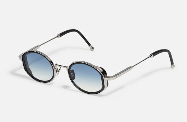 Owalny kształt unisex z wyciętymi krawędziami z acetatu, który wyróżnia się na tle grawerowanego metalu o grubości 4 mm. Oprawę ożywiają nasze nowe, charakterystyczne zauszniki z wygrawerowanymi końcówkami Johna Dalii. Wykonana na zamówienie ramka ze stopu szarego octanu i 22-karatowego różowego złota (warstwa ok. 5µ i stempel jubilerski wewnątrz zauszników). Szare soczewki gradientowe CR39 z obróbką AR.